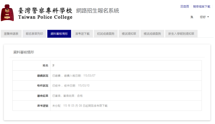 1.考生報名審核情形,請各考生可自行點選資料審核情形檢查。